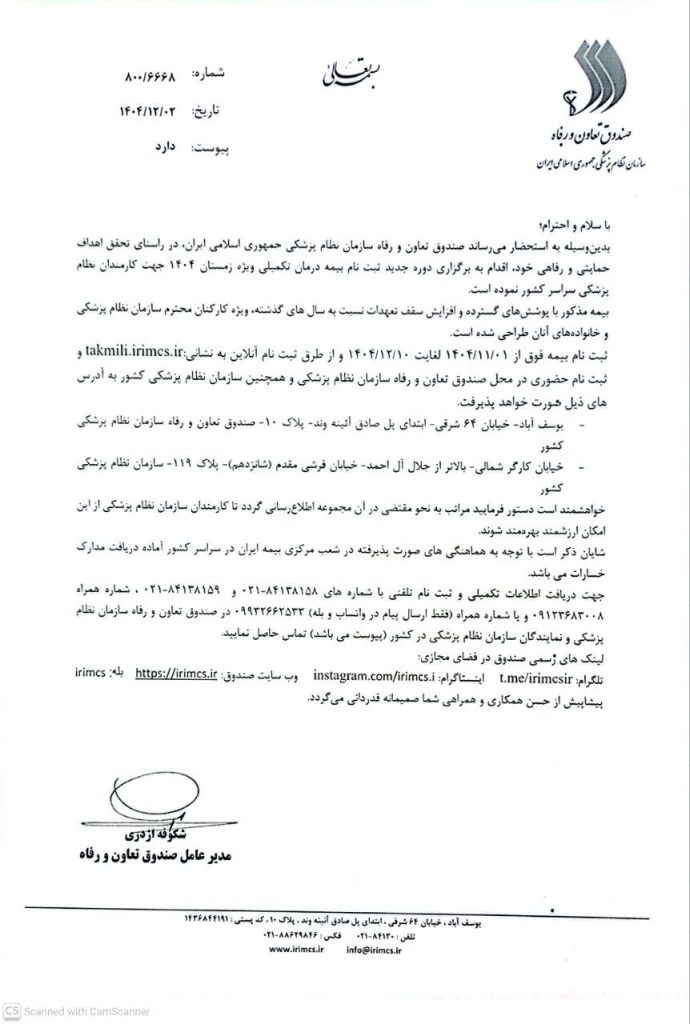 - دوره جدید ثبت نام بیمه تکمیلی ویژه زمستان ۱۴۰۴