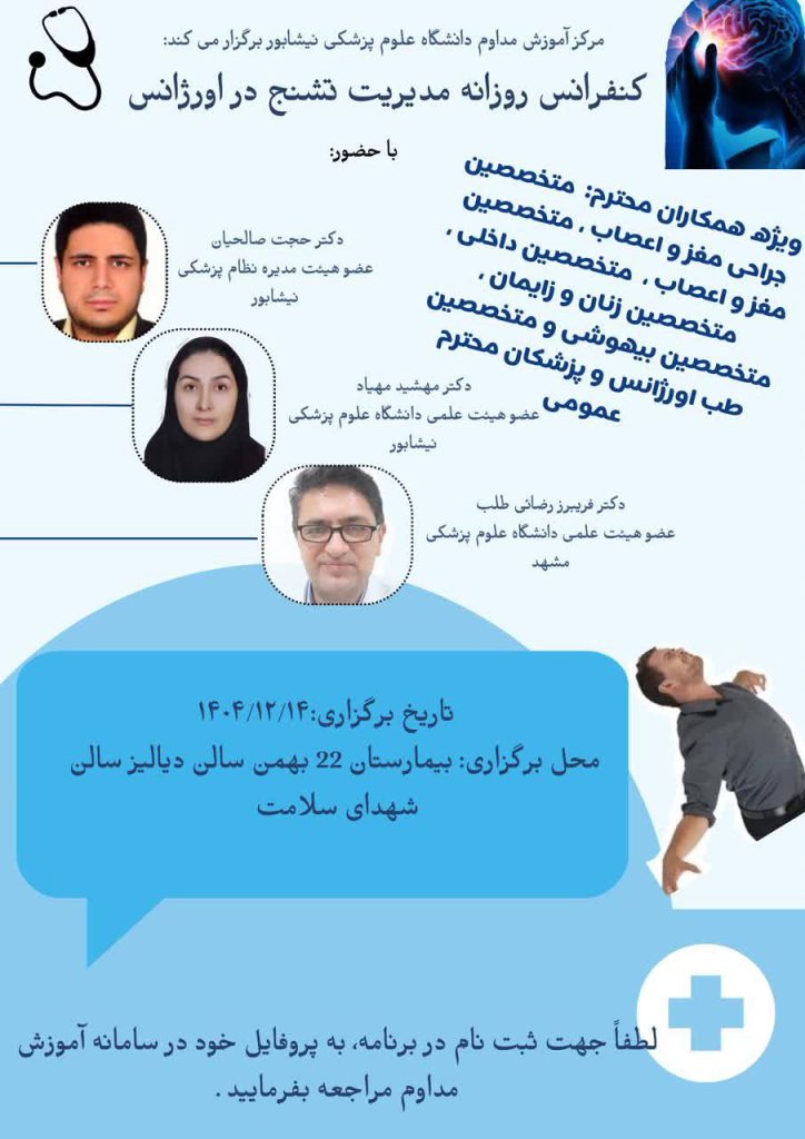 کنفرانس روزانه مدیریت تشنج در اورژانس═════❁💠❁═════کانال جدید خبری تلگرامی سازمان نظام پزشکی نیشابور:https://t.me/nezamneyshabourr